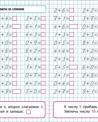 Специально подобранные примеры и задания помогут не только овладеть простейшими арифметическими действиями сложения и вычитания в пределах 10, но и научат правильно оформлять математические примеры и задачи.