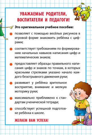 Главная / Развивающие пособия / Первые математические прописи / Знакомимся с цифрами и знаками. 4-5 лет Знакомимся с цифрами и знаками. 4-5 лет Развивающее издание для детей младшего и школьного возраста Артикул: ART098554 Категории: Первые математические прописи, Новинки и новые тиражи, Развивающие пособия Автор: Петров П.В. Издательство: Мн: Книжный Дом Детали Детали Количество страниц 16 Обложка Обложка Год 2025 Формат 70х90/16 ISBN 978-985-17-2815-8 Возрастная категория 4+ Дата выхода 07.07.2025 Похожие товары Классические прописиНовинки и новые тиражиРазвивающие пособияДетали Каллиграфическое написание английских букв Петренко С.В. Подробнее Развивающие пособияДетали Азбука. Для самых маленьких. БОЛЬШАЯ!!! (30х46см) 2-е изд Волков О.П. сост. Подробнее